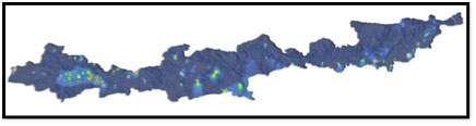 Fruto del análisis de los datos y de la visita de las auditoras de la Fundación Starlight se propuso la zonificación mostrada en la imagen anterior en la que zonas púrpuras muestran las localizaciones donde la calidad del cielo es mayúscula. Cabe destacar que dada la extensión territorial de Sierra Morena es impresionante que prácticamente todo el ámbito de estudio haya arrojado valores tan excepcionales.